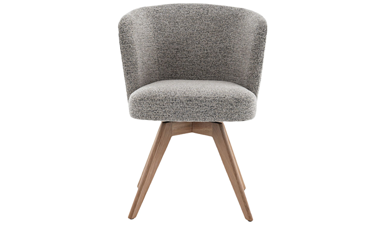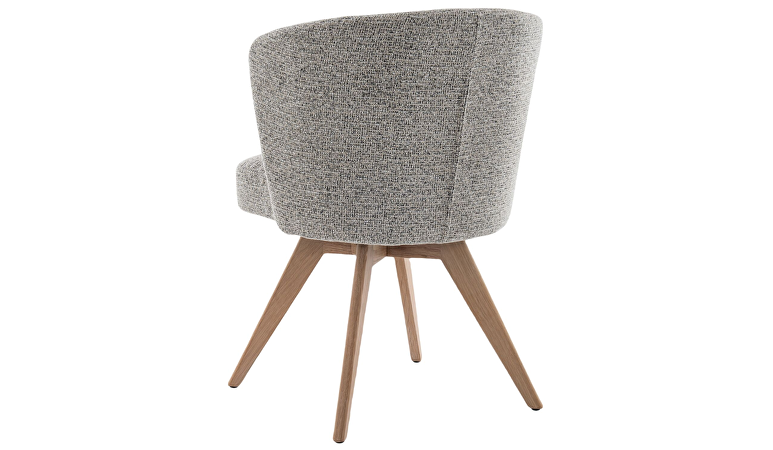 Armstoel Mandolia is met zijn trendy afgeronde vorm een echte eye-catcher voor aan je eettafel. Deze moderne eetkamerstoel is uitgevoerd in een mooie lichtbruine weefstof en een draaibaar massief eiken onderstel inclusief terugdraaimechanisme. Hierdoor zal de stoel altijd weer naar zijn oorspronkelijke positie terugdraaien.