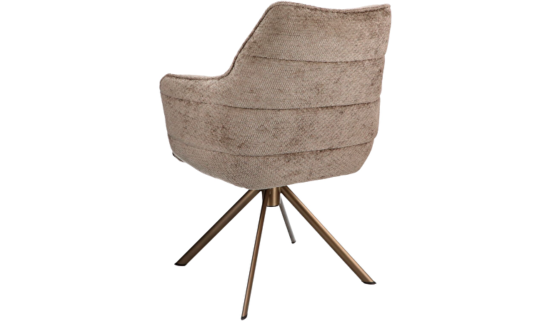 De stof Movie is een grof geweven velours achtige, die zacht aanvoelt. Het strake onderstel is uitgevoerd in een prachtige bronskleur. Deze is draaibaar en voorzien van een terugdraaimechanisme. Hierdoor kun je gemakkelijk van tafel weglopen, waarna de stoel weer terugdraait in zijn oorspronkelijke positie. Dat is pas handig!