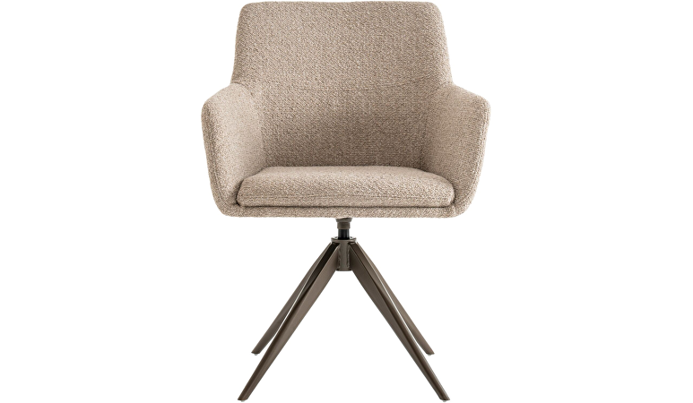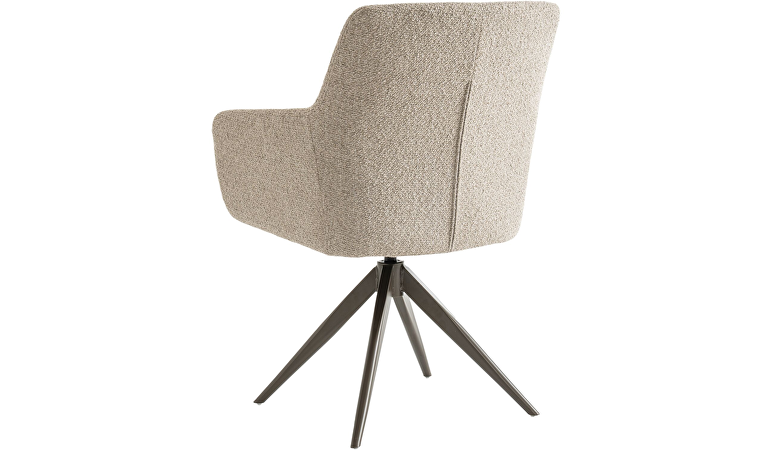 Wat de Vinta een bijzondere armstoel maakt, is de combinatie van unieke eigenschappen. Allereerst heeft de stoel een rank metalen onderstel met een automatisch terugdraaimechanisme, waardoor deze altijd netjes aan tafel staat en je makkelijk "uitstapt". Een ander leuk detail is dat de stoel verkrijgbaar is in 3 kleurtjes in de prachtige boucléstof rhythm.