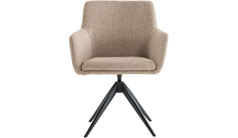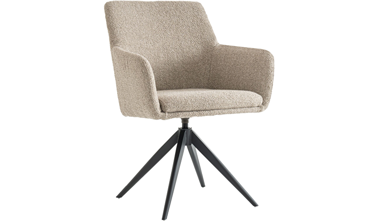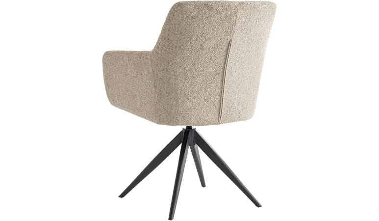 Wat de Vinta een bijzondere armstoel maakt, is de combinatie van unieke eigenschappen. Allereerst heeft de stoel een rank metalen onderstel met een automatisch terugdraaimechanisme, waardoor deze altijd netjes aan tafel staat en je makkelijk "uitstapt". Een ander leuk detail is dat de stoel verkrijgbaar is in 3 kleurtjes in de prachtige boucléstof rhythm.