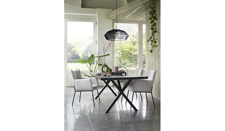 Eettafel Taranto is er eentje met 1001 mogelijkheden. Deze zwarte eikenhouten tafel is voorzien van een rechthoekig bovenblad en zwarte metalen X-poten met steun wat de Taranto een stoere look geeft. Met een lengte van 220 cm kun je er gemakkelijk 4 tot 6 personen aan kwijt.