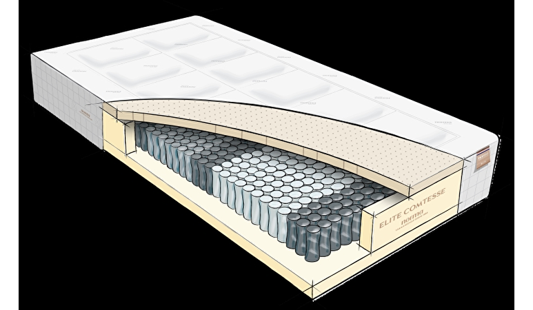 • 7 zone pocketveren kern met meer dan 700* veren, dubbel thermisch gehard en progressief.