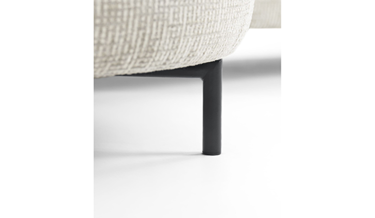 Uitgevoerd in stof Coco 196-shell met arm type A, Engelse stiknaad en zwarte metalen poten.