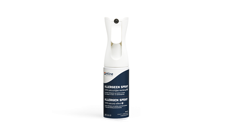 De M line allergeen spray maakt gebruik van actieve probiotica die op 100% biologische wijze veel voorkomende allergenen afbreekt en onaangename geurtjes vermindert. Gebruik de spray op bedtextiel, bed/boxspring, dekbed, kussens, tapijt, gordijnen en harde oppervlakten als stoelen, tafels en vloeren.
