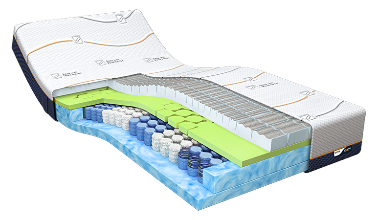 Koudschuim matras met meerdere lagen traagschuim Dit ‘Hybrid’ matras heeft een basis van koudschuim, gecombineerd met een 7-zones pocketvering, clima-support laag en een zachte toplaag van traagschuim. Deze combinatie van pocketveer en schuim voegt het beste van twee werelden samen en geeft optimaal comfort en ondersteuning. Opbouw Cool Motion 6 De Cool Motion 6 is als volgt opgebouwd: Antislip laagOm te voorkomen dat het matras gaat verschuiven zit aan de onderkant een ventilerende antislip laag. Basis van koudschuim met 7-zones pocketveringDe zonering in de pocketveren ondersteunt je lichaam op alle juiste plaatsen, zodat je een optimale drukverdeling ervaart en soepel opstaat. M line heeft hiervoor de perfecte afstelling gevonden door de zonering te testen in een onderzoek onder 6.000 deelnemers. Daarnaast zorgt de open structuur van de pocketveer voor extra ventilatie. Clima Support-laagDoor de Clima Support laag geniet je van een optimale ventilatie en een goede warmteafvoer. Je voelt je 's ochtends direct fris en compleet uitgerust. In de Clima Support-laag is ook de Body Adapt techniek gebruikt: insnijdingen per lichaamszone die de druk van je lichaam op het matras beter verdelen en ondersteunen. Traagschuim toplaagDe traagschuim toplaag vermindert druk op heup en schouder. Dit visco-elastisch schuim laat warmte en vocht beter door dan traditioneel schuim, terwijl je wel profiteert van dezelfde drukverlagende eigenschappen. De open structuur van het schuim ervoor dat je makkelijker kan omdraaien en vermindert druk op uitstekende lichaamsdelen, zoals schouders en heupen. Daardoor blijft je doorbloeding optimaal en worden zenuwen niet afgekneld. De speciale insnijdingen per lichaamszone zorgen voor een voortreffelijke drukverdeling en een soepele ondersteuning op maat. Dual action tijkDe hoes/tijk bevat de gepatenteerde HeiQ Cool- en HeiQ Allergen TechTM-technologie. HeiQ Allergen TechTM-technologie is een 100% natuurlijke afwerking die blootstelling aan allergenen van huisstofmijt en huisdieren vermindert, met behulp van actieve probiotica. De technologie heeft een dubbele werking die zorgt voor een directe én blijvende temperatuurregulatie. Bij het eerste contact ervaar je direct verkoeling en lig je in een comfortabel koel bed. Heb je het alsnog warm in bed? Dan treedt het tweede proces in werking. Vocht en warmte worden daarbij direct geabsorbeerd en afgevoerd. Hoe warmer het wordt, hoe meer verdamping er plaatsvindt. Anti-allergene en temperatuur regulerende coating Uniek aan de Cool Motion is de Aqua- en Copper Coating in de toplaag. De Aqua Coating is een gepatenteerde coating bovenop de traagschuim toplaag. Deze coating heeft een krachtig verkoelend effect, dit voel je direct wanneer je het matras aanraakt. De laag is ademend en flexibel, waardoor je comfortabel slaapt. Door het toevoegen van deze laag ben je verzekerd van de juiste temperatuur gedurende de nacht.De koperdeeltjes in de Copper Coating zorgen voor actieve bescherming tegen bacteriën. Wanneer bacteriën op koper terechtkomen na bijvoorbeeld lichamelijk contact, hoesten of niezen komen er koperionen vrij. Deze ionen worden opgenomen in de bacteriën waardoor ze worden vernietigd. Zo blijft het matras dankzij deze gepatenteerde technologie altijd fris. Verschil Cool Motion 5 & Cool Motion 6 De Cool Motion 5 en Cool Motion 6 matrassen hebben dezelfde opbouw, de matrassen verschillen enkel in de stevigheid van de pocketveer, Clima Support laag en traagschuim toplaag. De Cool Motion 5 heeft een zachte pocketveer, tussen- en toplaag, terwijl de Cool Motion 6 een stevige pocketveer, tussen- en toplaag heeft.