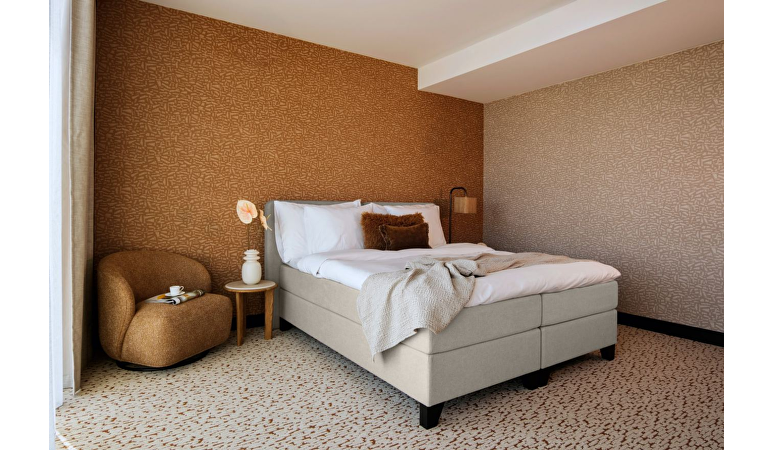 De Valk Exclusief x M line Hotelboxspring Executive met Comfort topper biedt een sublieme slaapervaring en brengt de luxe van een hotelovernachting naar je eigen slaapkamer. Deze boxspring is ontwikkeld volgens de hoogste hotelstandaarden en combineert geavanceerde M line slaaptechnologie met een stijlvol en krachtig design. Het royale, dubbel uitgevoerde hoofdbord met zachte, afgeronde panelen zorgt voor een elegante uitstraling en geeft extra diepte aan het interieur.