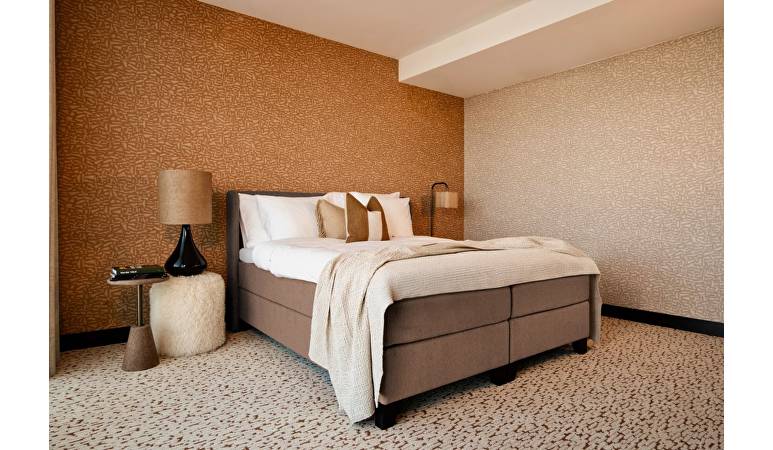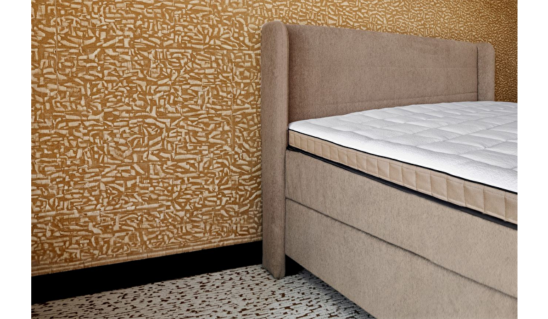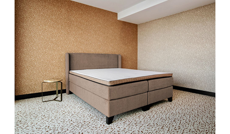 Het royale hoofdbord van de Grand Suite uitvoering is rijk gestoffeerd en voorzien van flankpanelen, wat het bed een indrukwekkende en elegante uitstraling geeft. Dit ontwerp maakt van de boxspring een stijlvol statement in de slaapkamer en benadrukt het luxe karakter van de suite.