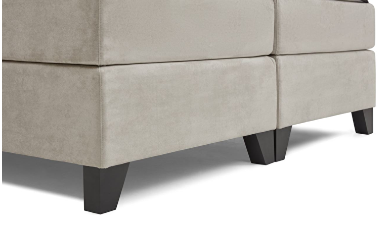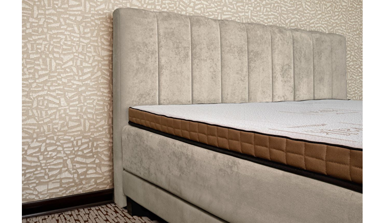De boxspring is opgebouwd uit een extra stevig en solide frame met middensteunpoten en sterke sponden, wat zorgt voor maximale stabiliteit en een lange levensduur. Zelfs bij intensief gebruik blijft de boxspring zijn vorm en hoogwaardige afwerking behouden. De luxe stoffering is afgewerkt met anti-pilling technologie, waardoor het materiaal glad en strak blijft zonder pluisvorming en zijn exclusieve uitstraling behoudt.