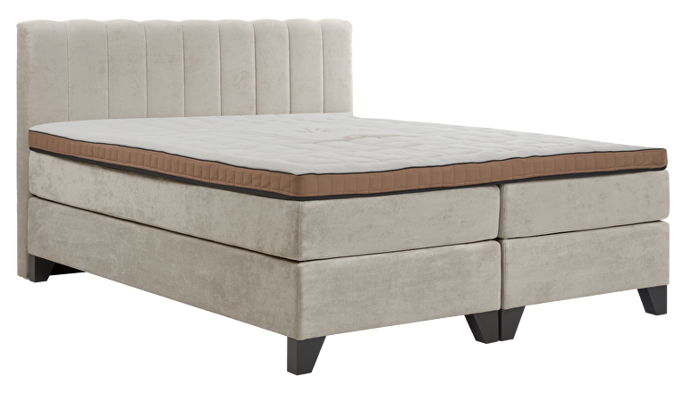 Hotelboxspring Suite met Topper Luxury De Valk Exclusief x M line Hotelboxspring Suite met Luxury topper biedt een sublieme slaapervaring en brengt de luxe van een hotelsuite naar je eigen slaapkamer. Ontwikkeld volgens de hoogste hotelstandaarden combineert deze boxspring geavanceerde M line slaaptechnologie met een verfijnd en stijlvol design. Het rijk gestoffeerde hoofdbord met verticale belijning geeft de slaapkamer een elegante en luxueuze uitstraling. Wat deze boxspring bijzonder maakt De boxspring is opgebouwd uit een extra stevig en solide frame met middensteunpoten en sterke sponden, wat zorgt voor maximale stabiliteit en een lange levensduur. Zelfs bij intensief gebruik blijft de boxspring zijn vorm en hoogwaardige afwerking behouden. De luxe stoffering is afgewerkt met anti-pilling technologie, waardoor het materiaal glad en strak blijft zonder pluisvorming en zijn exclusieve uitstraling behoudt. Voor optimaal ligcomfort is de boxspring uitgerust met een combinatie van 7-zone pocketvering en clima-supportschuim. Deze technologie biedt gerichte ondersteuning per lichaamszone, waardoor schouders, rug en heupen precies de ondersteuning krijgen die nodig is voor een gezonde en ergonomische slaaphouding. Specifieke eigenschappen Het hoofdbord van de Suite uitvoering is rijk afgewerkt en voorzien van verticale belijning, wat zorgt voor een stijlvolle, verfijnde en luxe uitstraling. Hierdoor vormt de boxspring een echte blikvanger en krijgt de slaapkamer de sfeer van een exclusieve hotelsuite. De meegeleverde Luxury Comfort topper van 10 cm dik biedt een extra luxe en diep omhullend liggevoel. Dankzij de extra comfortlaag in de hoes wordt niet alleen maximale drukverlichting bereikt, maar ook een uitstekende ventilatie voor een fris slaapklimaat. De topper is voorzien van een afritsbare, hypoallergene hoes en een anti-slip onderzijde, wat zorgt voor extra hygiëne, stabiliteit en gebruiksgemak. Een samenwerking om van te dromen Valk Exclusief en M line bundelen hun expertise in luxe en slaapinnovatie. Het resultaat is een exclusieve boxspring collectie waarin design en comfort naadloos samengaan. Met aandacht voor elk detail, hoogwaardige materialen en wetenschappelijk geteste slaaptechnologie transformeert deze collectie je slaapkamer in een privé vijfsterrenervaring.