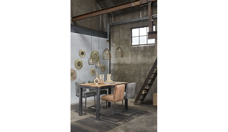Bartafel Mesola is een trendy tafel met een industriële uitstraling. De warme, lichtbruine kleur en de metalen poten zorgen voor een unieke sfeer in je woonkamer. Deze robuuste tafel is gemaakt van massief mangohout. Dit hout heeft een natuurlijke uitstraling met verschillende lijnen, nerven en kleurschakeringen. Hierdoor is ieder meubel uniek. Het hout is afgewerkt met een transparante lak, zodat er niet snel vlekken op ontstaan en het onderhoud eenvoudig is.
