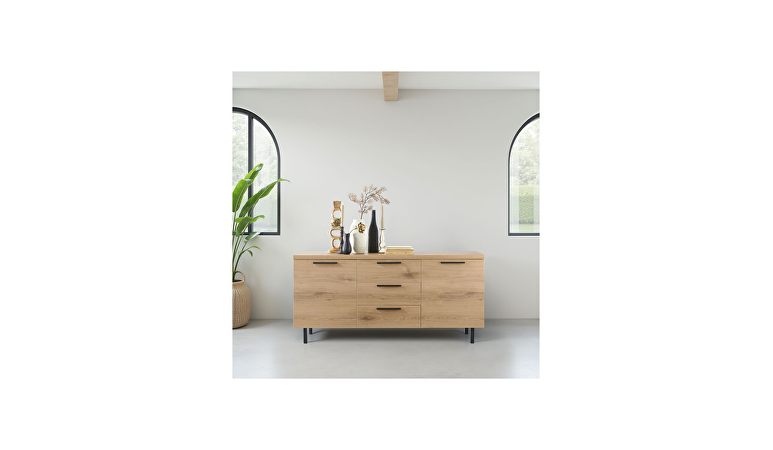 Dressoir Paranno in warme naturel kleur met zwarte accenten