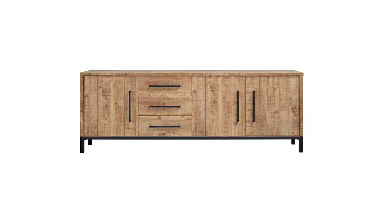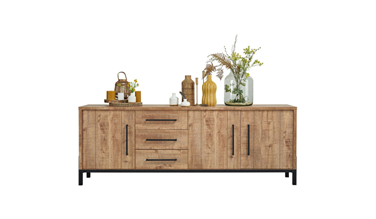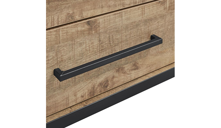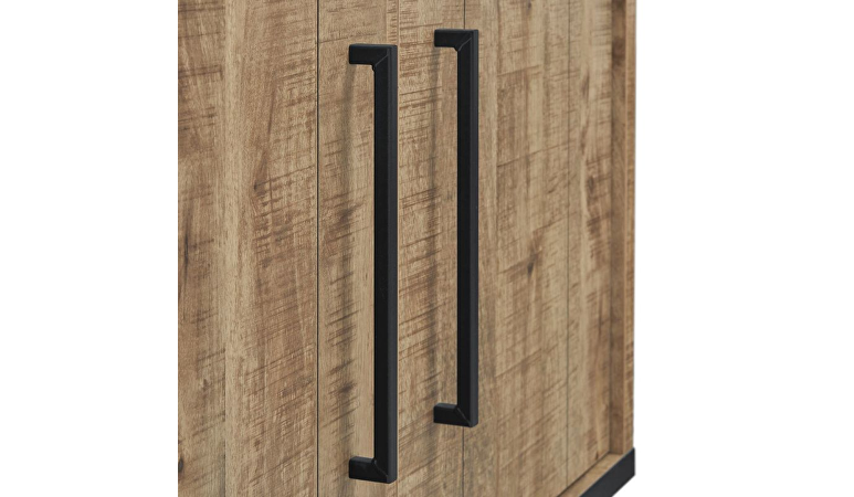 Het woonprogramma is gemaakt van meubelpanelen van een hoge kwaliteit melamine. De melamine decorlaag in de kleur mango ziet er uit als echt hout en heeft zelfs een licht reliëf, waardoor het ook aanvoelt als echt hout. De zwarte metalen handgrepen en frame maken het tot een stoer geheel. Woonprogramma Ricardi wordt gemonteerd geleverd met uitzondering van de eettafels. Daarvan dien je de poten nog zelf te monteren.