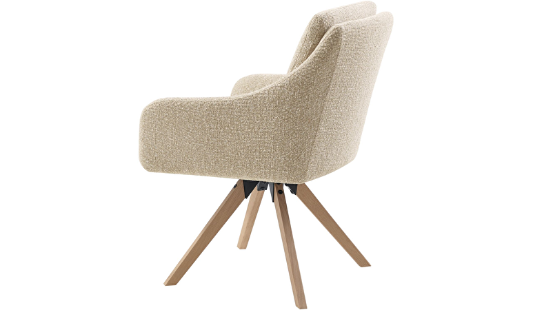 De armleuningen hebben een hoogte van 66 cm, waardoor de stoel goed aansluit bij de meeste standaard eettafels. Houd bij het kiezen van je tafel rekening met een speling van circa 2 cm tussen armleuning en tafelblad. De eikenhouten poot met matte afwerking geeft de stoel een warme en natuurlijke uitstraling. Met de duidelijke handleiding is de montage eenvoudig zelf te doen.