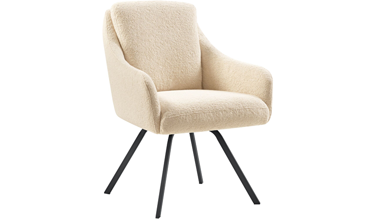 De armstoel Meltina is een elegante blikvanger voor de eetkamer. De stoel is bekleed met een zachte, comfortabele boucléstof die de stoel een luxe en sfeervolle uitstraling geeft. De beige tint straalt warmte uit en laat zich eenvoudig combineren met verschillende interieurstijlen. Dankzij de hoge rugleuning, afgeronde kuip en praktische armleuningen zit de Meltina heerlijk, ook tijdens lange avonden aan tafel.