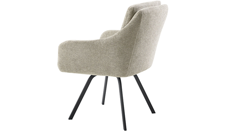 De armleuningen hebben een hoogte van 66 cm, waardoor de stoel goed aansluit bij de meeste standaard eettafels. Houd rekening met circa 2 cm speling tussen armleuning en tafelblad. De zwarte metalen poot is voorzien van een terugdraaimechanisme, zodat de stoel automatisch terugkeert naar zijn beginstand. Met de duidelijke handleiding is de montage eenvoudig zelf te doen.