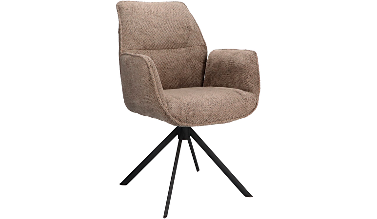 De armstoel Ombrone combineert eigentijds design met optimaal comfort. Uitgevoerd in een taupekleurige chenille weefstof. Deze sterke en slijtvaste stof voelt zacht en prettig aan en geeft de armstoel een luxe uitstraling die perfect aansluit bij de huidige interieurtrends. De mooi gevormde armleuningen en de goed ondersteunde rug zorgen voor een comfortabele zit. Een subtiel horizontaal stiksel in de rugleuning geeft de stoel extra karakter. Het zwarte metalen 4-teens onderstel zorgt daarbij voor een stoere en stabiele basis.