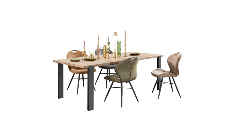 Trendy eettafel Adanti heeft een industriële uitstraling. De warme, lichtbruine kleur en het gepoedercoate zwart metalen frame zorgen voor een unieke sfeer in je woonkamer. Deze robuuste tafel is afgewerkt met een melamine toplaag. De toplaag ziet eruit als echt hout en heeft zelfs een licht reliëf, waardoor het ook aanvoelt als echt hout. Het materiaal is kras-, slijt- en stootvast, eenvoudig in onderhoud en gebruiksvriendelijk. Hierdoor is de tafel ook bijzonder geschikt voor gezinnen met (jonge) kinderen.