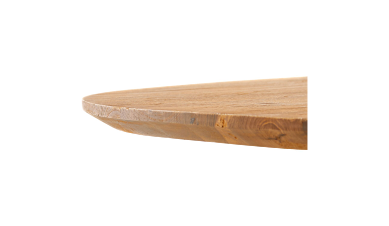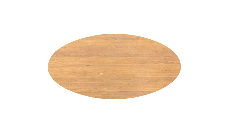 Ontdek de perfecte harmonie van elegantie en duurzaamheid met onze eettafel Aska. Het ovale tafelblad, vervaardigd uit 3 cm dik gerecycled teak, straalt karakter en warmte uit. De zorgvuldig afgeschuinde rand voegt een subtiel vleugje verfijning toe aan deze tijdloze creatie. De tafel staat op een moderne, zwart metalen spinpoot (5 x 5 cm) die een eigentijdse touch aan je interieur geeft. Met een lengte van 240 cm, breedte van 120 cm en een hoogte van 77 cm is deze tafel perfect voor elke woonkamer.