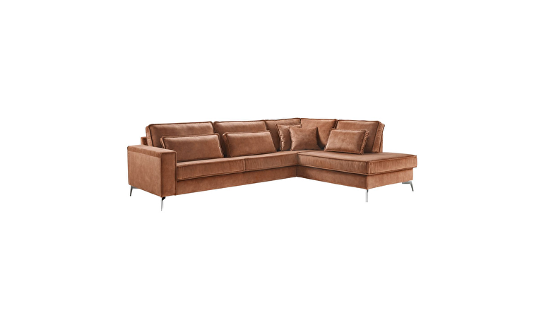 Tijdloze hoekbank in een luxe, bruine velvetstof
