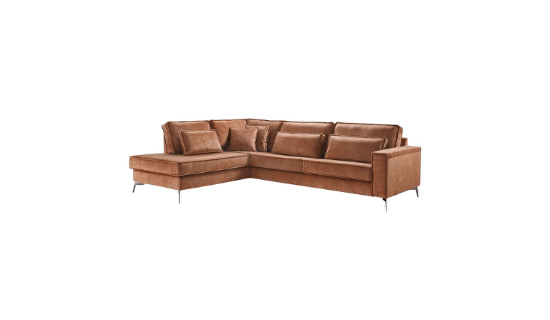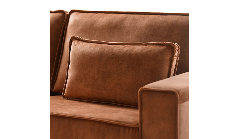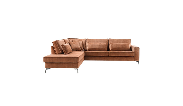 Tijdloze hoekbank in een bruine, luxe velvetstof