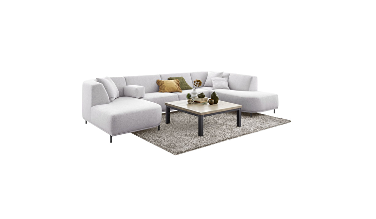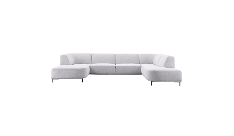 Hoekbank Pantini heeft een moderne en vriendelijke uitstraling door de ronde vormen en de dunne plint die subtiel aansluit op de volle zit- en rugleuning. De bank is uitgevoerd in een lichtgrijze gemêleerde weefstof. Door het gebruik van verschillende garens ontstaat een levendig, licht meerkleurig effect met een structuur die zacht en vol aanvoelt. De zwarte metalen poten geven de bank een strak en eigentijds accent.