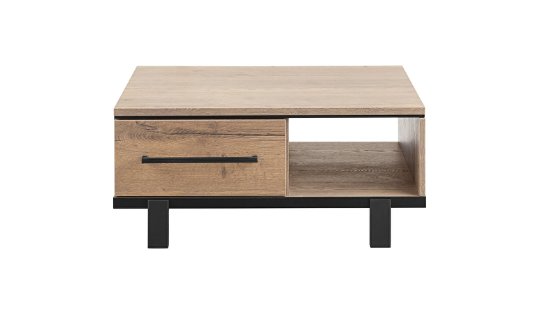 De vierkante tafel is 90 cm breed en 40 cm hoog. Er zit 1 lade in, zodat je genoeg ruimte hebt om bijvoorbeeld onderzetters of afstandsbedieningen uit het zicht op te bergen. De lade is voorzien van een softclose systeem, waardoor deze automatisch zachtjes sluit. Door de praktische afmeting kan je deze tafel gebruiken als bijzettafel naast de bank, of je kan er 2 naast elkaar te zetten voor een speels effect. Het open vak heeft een hoogte van 22,7 cm en een breedte van 37,7 cm.