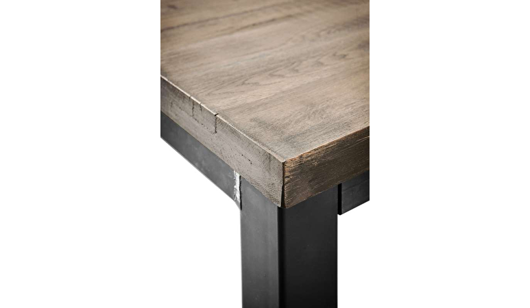 Deze robuuste salontafel Hevano is gemaakt van eikenhout met een grof gelast stalen onderstel. Eikenhout kenmerkt zich door de fijne nerf, vlamtekening en de wisselende kleurschakering. Elke boom heeft een eigen uitstraling door de groei en weersinvloeden. Structuur, nerfschakering, windbarstjes, haarscheurtjes en de aanwezigheid van grote en kleine knoesten getuigen van jarenlange groei en maken het hout van de boom authentiek.