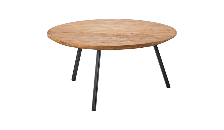 Breng een industriële touch in je interieur met deze salontafel uit de woonserie Romaro. De tafel heeft een blad van 3 cm dik, gemaakt van massief rough teak hout, dat is afgewerkt met een hoogwaardige matte NC-lak. De ronde vorm en de verjongde (afgeschuinde) rand van het blad zorgen voor een eigentijdse uitstraling, terwijl de afgeschuinde zwart metalen poten (2 x 2 cm) bijdragen aan het stoere karakter. Met een doorsnede van 75 cm, en een hoogte van 37 cm is deze tafel perfect voor elke woonkamer.