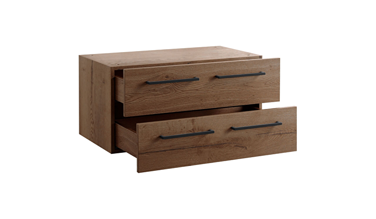 De Sistema wandkastenserie combineert sterke materialen met een eigentijdse uitstraling. Robuuste houtdecors, metalen accenten en strakke lijnen zorgen voor een stijlvol en modern geheel. De panelen zijn voorzien van een hoogwaardige melamine toplaag met subtiel reliëf, waardoor de warme uitstraling van echt hout wordt benaderd. Zo geniet je van de look van hout, met het gemak van een onderhoudsvriendelijk materiaal.