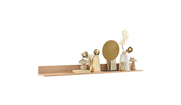 Met een breedte van 165 cm, hoogte van 12 cm en diepte van 21 cm is deze wandplank ideaal voor het tonen van boeken, foto’s of decoratieve items. De strakke vormgeving en warme kleur maken het een subtiele, maar stijlvolle aanvulling in je interieur.