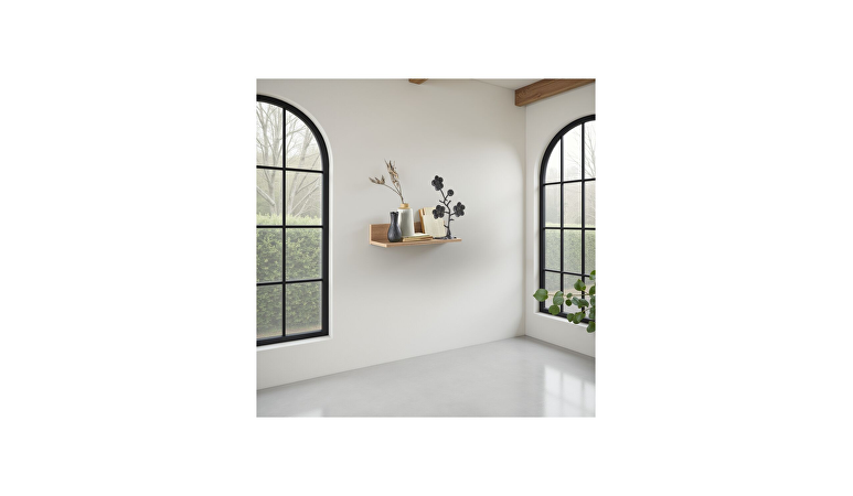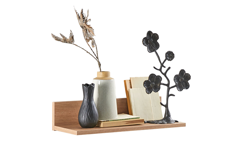 Met een breedte van 55 cm, hoogte van 12 cm en diepte van 21 cm is deze compacte wandplank perfect geschikt voor het presenteren van kleine accessoires, planten of fotolijsten. De plank is eenvoudig aan de muur te bevestigen en vormt een stijlvolle toevoeging aan je interieur.