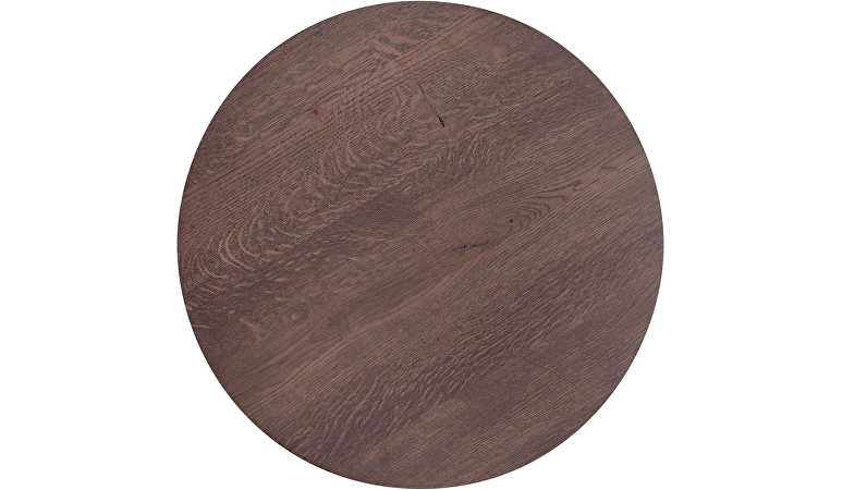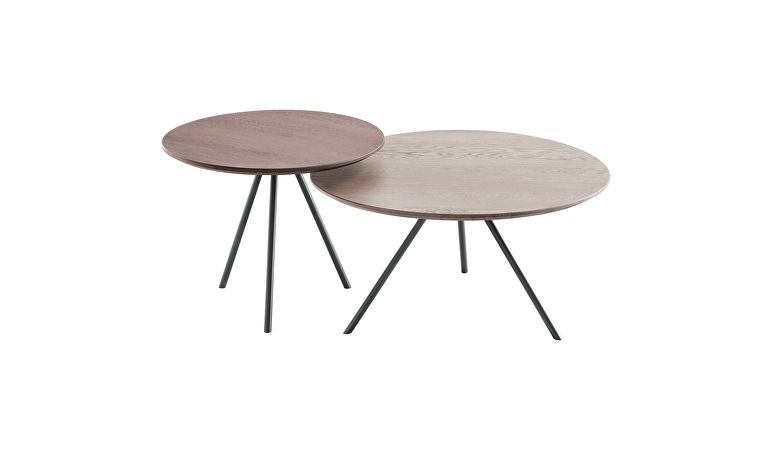 Salontafel Baldara is uitgevoerd in gelakt eiken kleur Coffee en heeft een afgeschuinde bladrand en metalen poten.