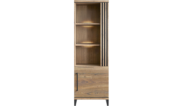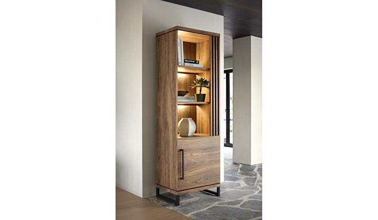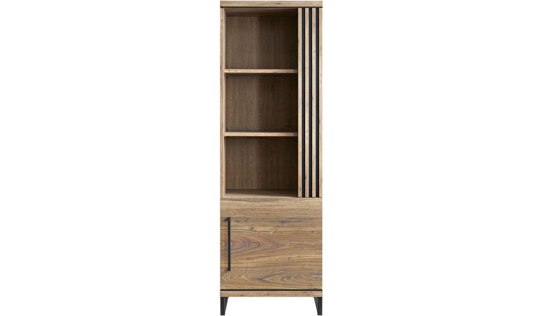 De wandkast is voorzien van 1 deur en 3 open vakken. De kast is 65cm breed en 200cm hoog. Een ideale kast op spullen netjes in op te bergen en leuke accessoire ten toon te stellen. De deur is voorzien van een soft-close systeem, hierdoor valt deze automatisch zachtjes dicht. De kast is voorgemonteerd, je kunt dus meteen beginnen met inrichten. Daarnaast is de kast heel goed te combineren met andere meubelen uit deze serie.