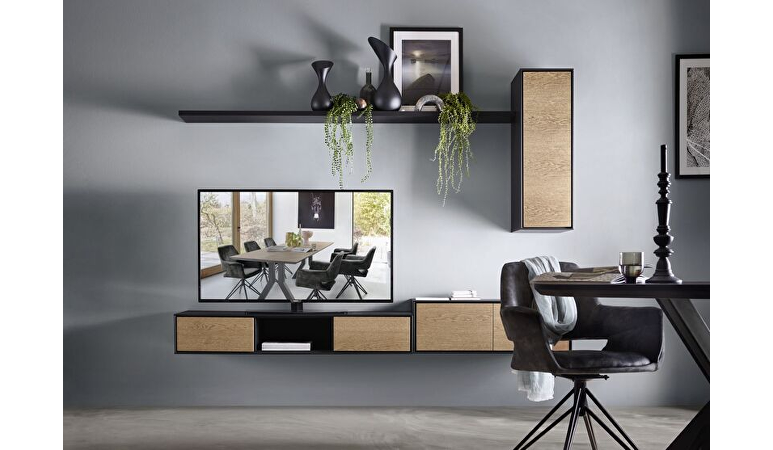 De serie Verdo springt meteen in het oog door de mooie vormgeving. De combinatie van de zwarte structuurlak en het eiken fineer in kasteelbruin hebben een frisse en eigentijdse look en de uitvoeringen zoals getoond zijn snel leverbaar.